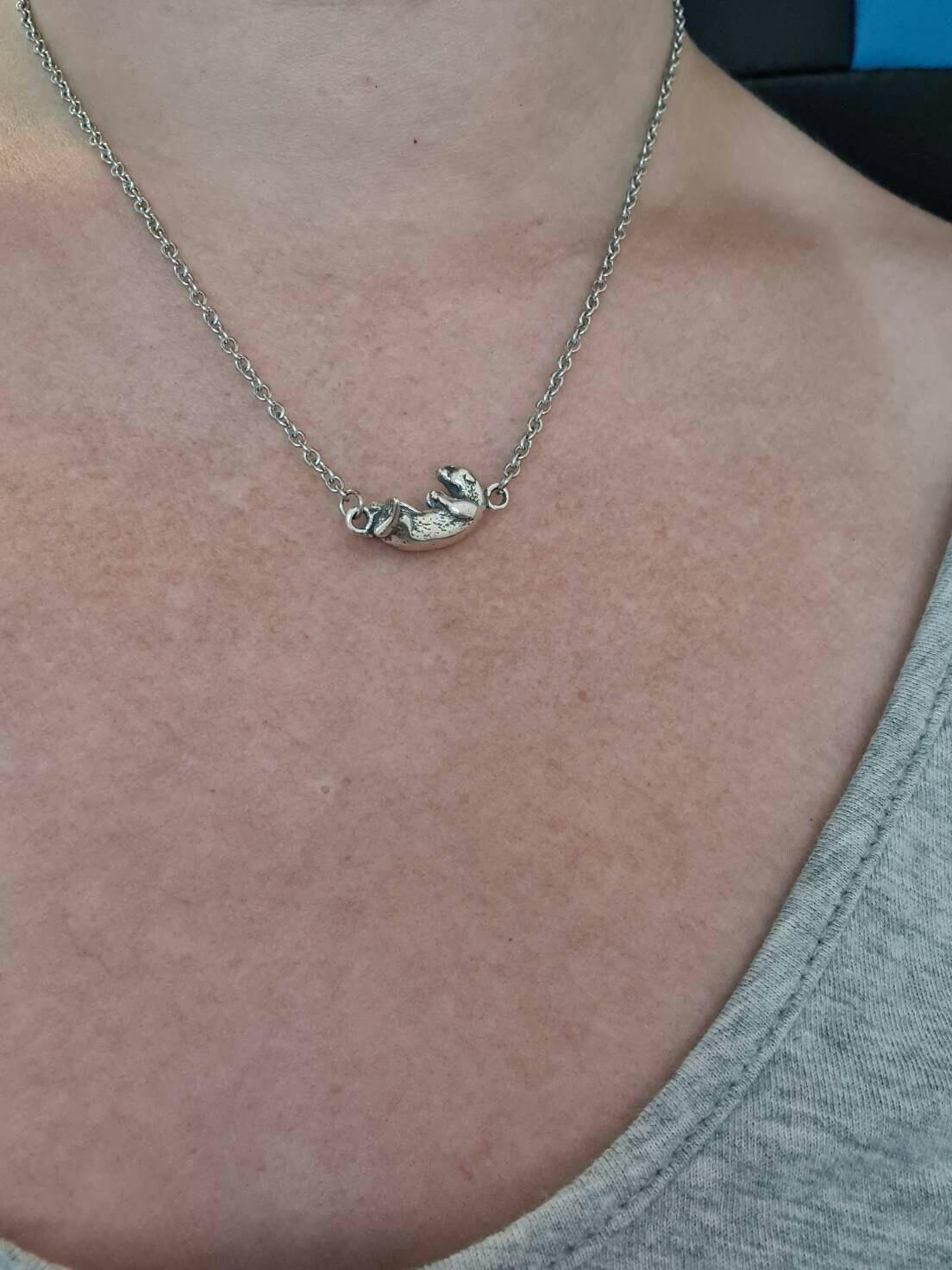 Floating Otter Pendant Charm Necklace - Solid 925 Sterling Silver- Oxidized Hand Polished Finish - Multiple Chain Lengths - Animal Jewelry - Moon Raven Designs